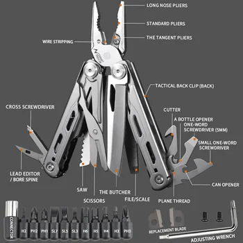 Compact 30-in-1 multitool combines pliers, wire stripper, knife, and 27 tools for camping, hiking, or emergencies. Lightweight, pocket-sized design for outdoor adventures.