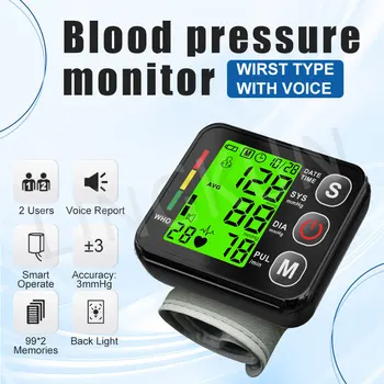 Digital Wrist Blood Pressure Monitor with English Voice Alerts