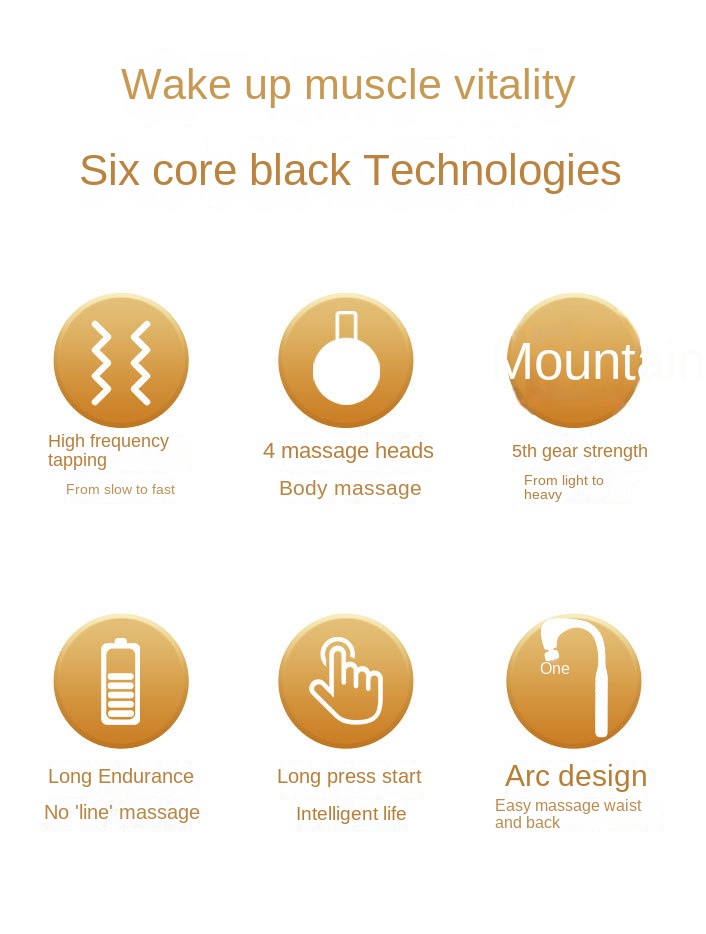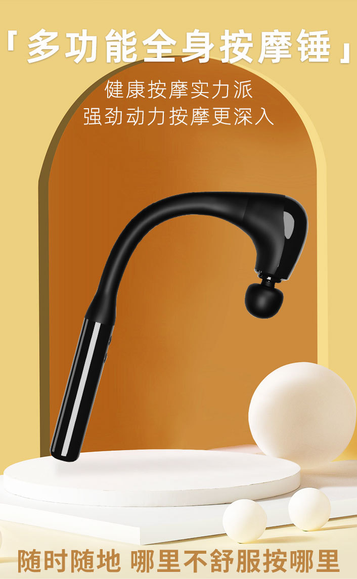 This portable deep tissue massager features a bent long handle and high-frequency vibration for targeted muscle relief. Effectively alleviates soreness and fatigue, designed for compact, on-the-go recovery.