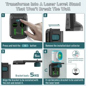Green Laser Level Decteam Electric Drilling Dust Collector 3 In 1 Wall Suction Vacuum Box Cleaning Tool Laser Bracket PQH05G