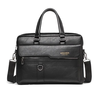 Durable men’s vintage-style PU leather briefcase with adjustable shoulder strap, ideal for business, laptop storage, or daily commuting.