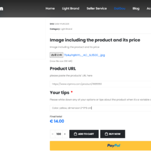 Please paste the product link and product page image according to the diagram, and also write clearly the details of the product you want to purchase, such as size, color, type, etc. After completing these steps, select the corresponding product quantity according to the RMB price on the e-commerce platform. For example, if you see that the final price of the product on the e-commerce platform is 100 yuan, please set the product quantity to 100. Then add it to the shopping cart and make the payment. The shipping cost of the product to your country will be updated in real-time by s.shipry.com based on the weight and size of the packaged product. We provide you with competitive shipping costs and modes of transportation